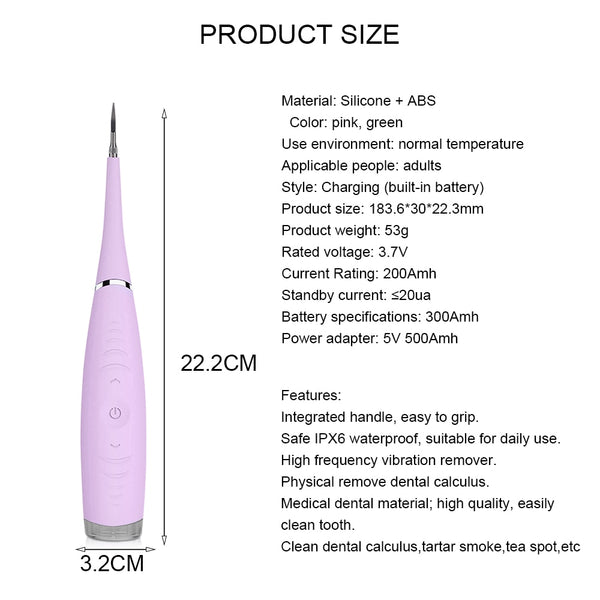 Electric Ultrasonic Scaler Tooth Calculus Remover Cleaner