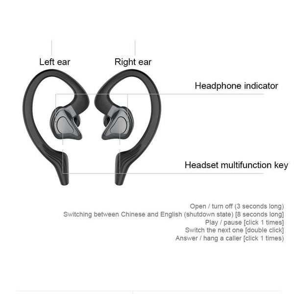 TWS Wireless Headphones Sport Bluetooth V4.2 Earbuds Earphones with Mic Charging Box-Q9-Black