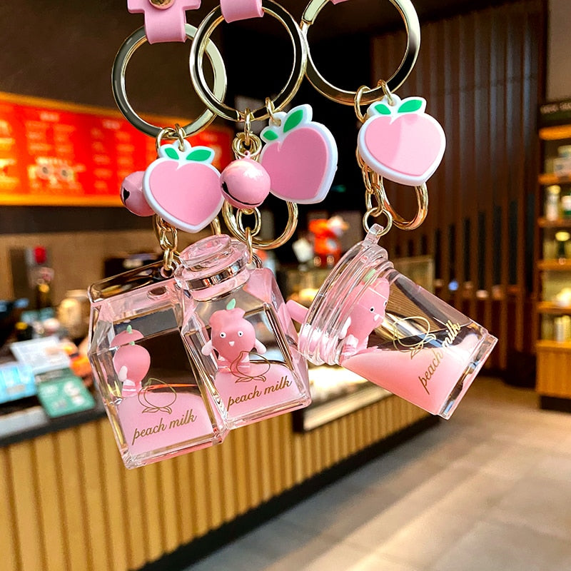 Creative Milk Bottle Crystal Milk Keychain Nail Clipper Key Chain Bag Pendant