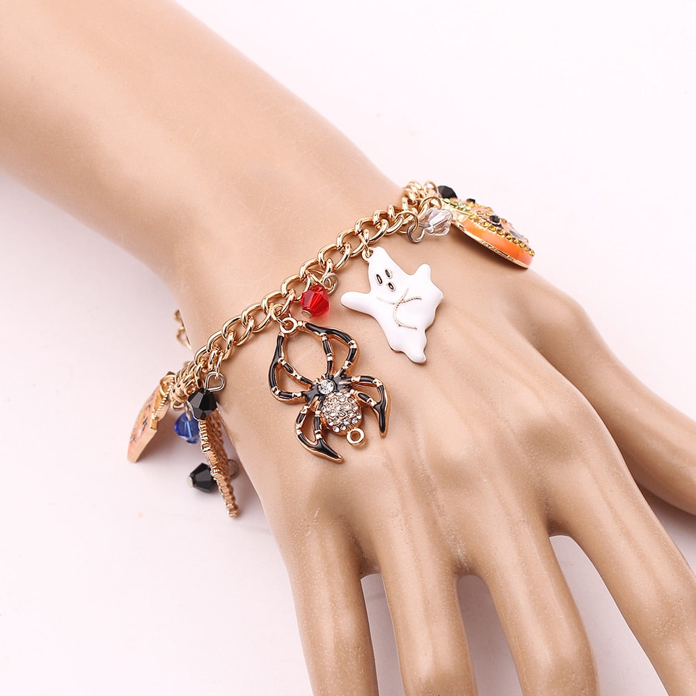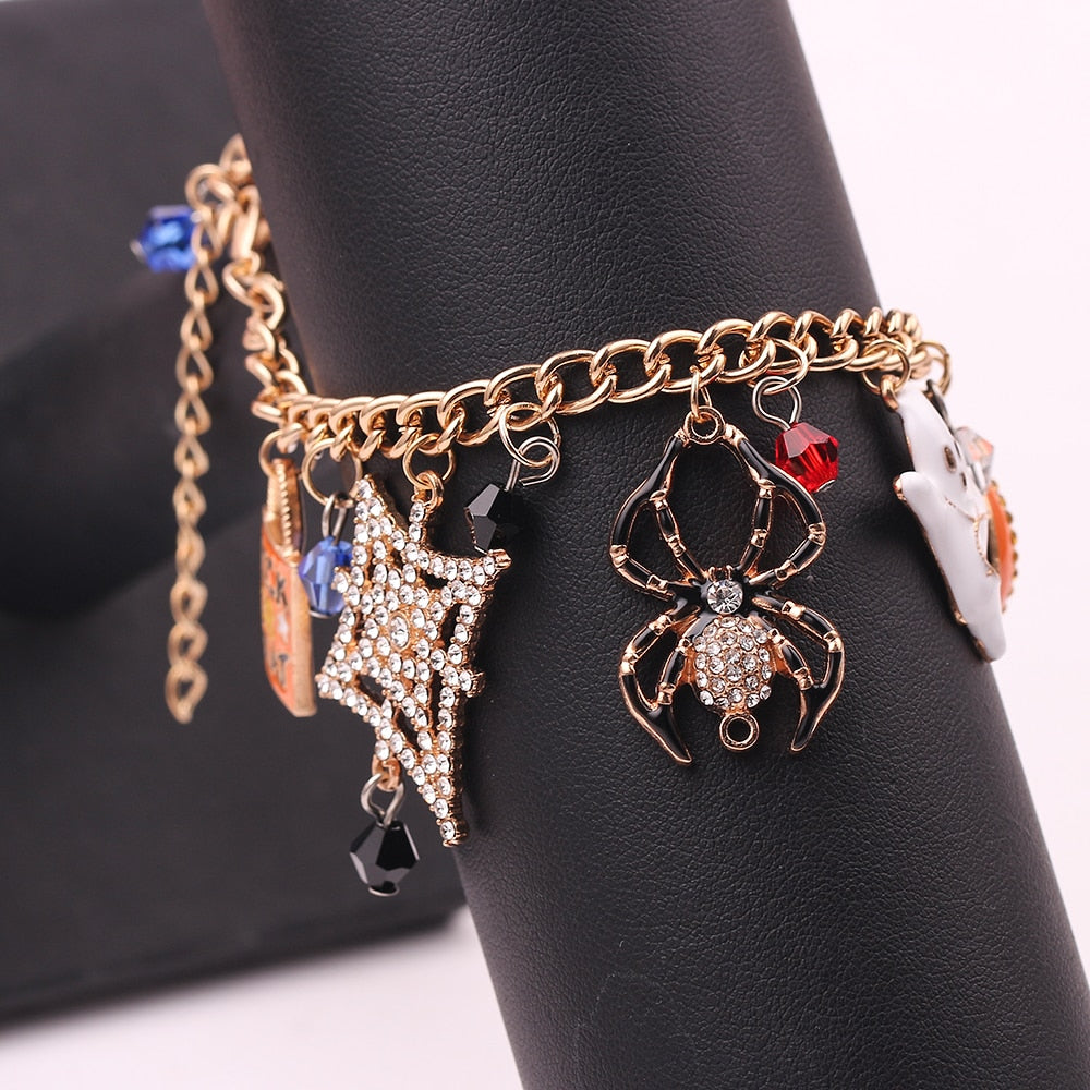 Skeleton Head Gothic Punk Charm Pumpkin Spider Bracelet Holloween Bracelet