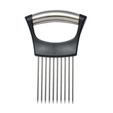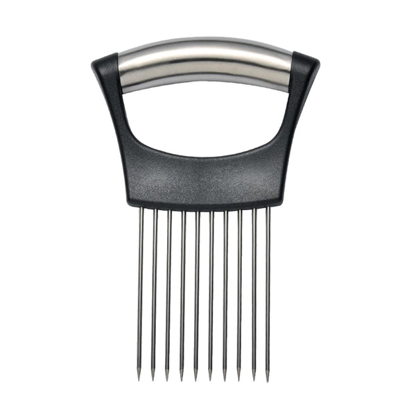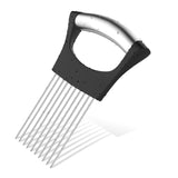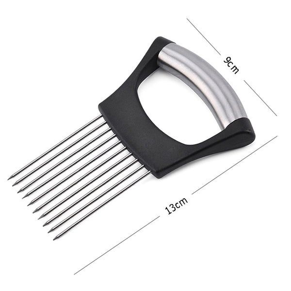 - Material: Stainless steel + ABS, This handy gadget not only holds the onion for you (no more stinky hands), but also guides your knife for perfectly even slices. If you do not want to touch onion, this gadget will be a great solution.