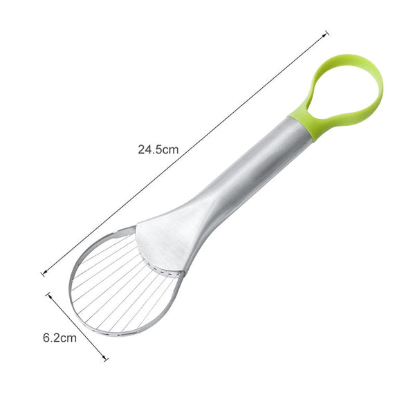 - The wired end makes it easy to slice precisely as you guide it over the fruit then turn the sliced fruit into a dish or plate with ease.
