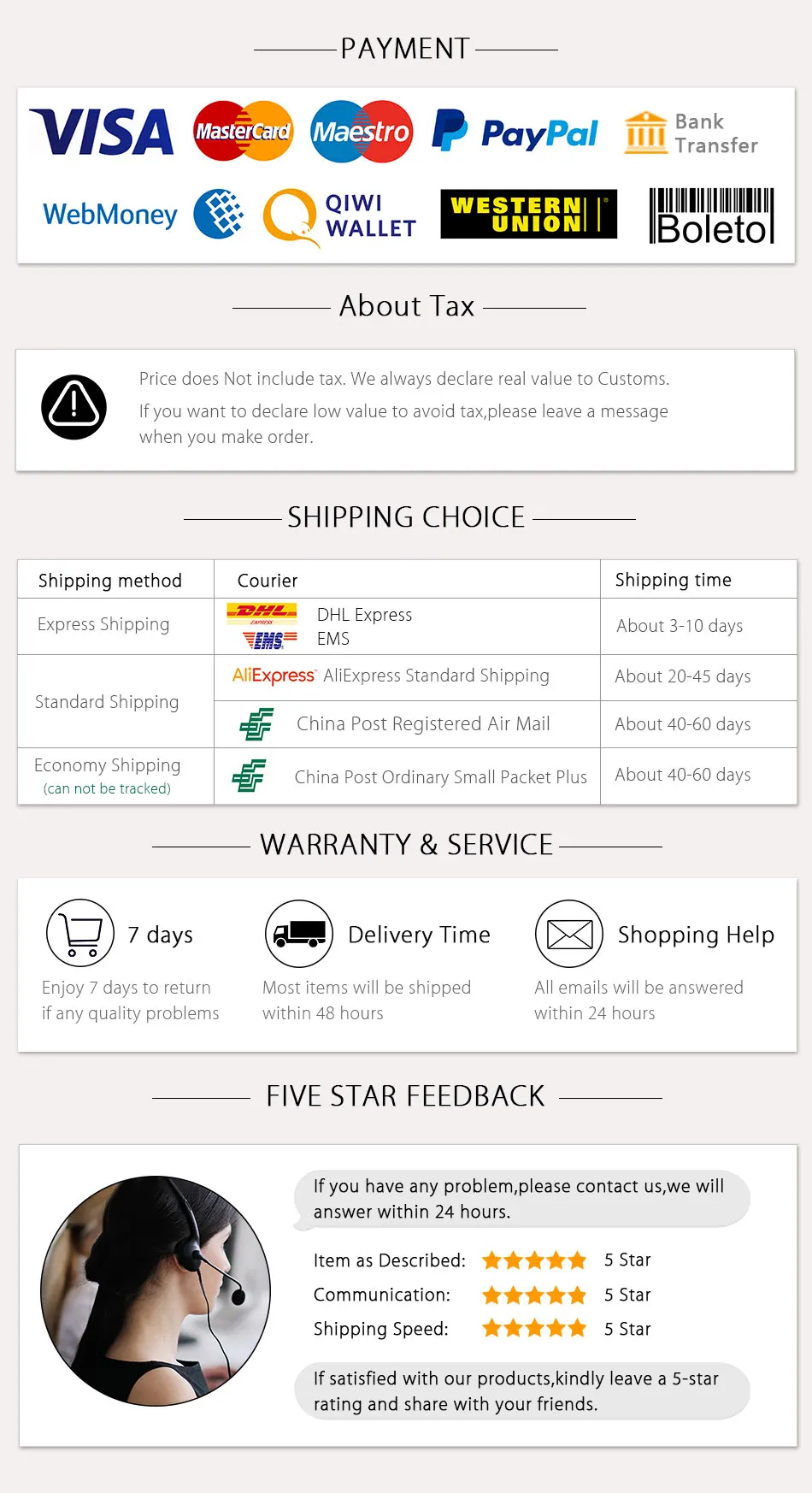 - If there is a item missing, we will resend the missing item/accessory for free within the warranty period.
