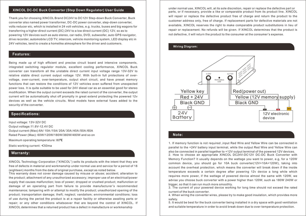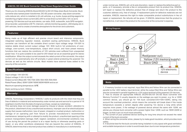XINCOL DC to DC Converter Step-down Transformer 24V to 12V Converter with Full Protections