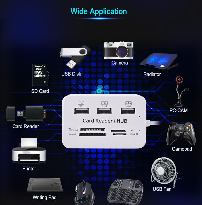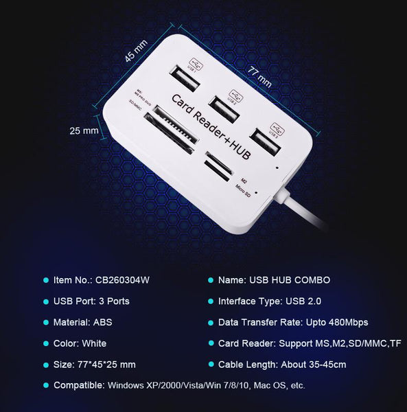 Micro USB Hub 2.0 Combo 3 Ports Card Reader High Speed USB Splitter All In One USB 3.0 Hub For PC Computer Accessories Notebook