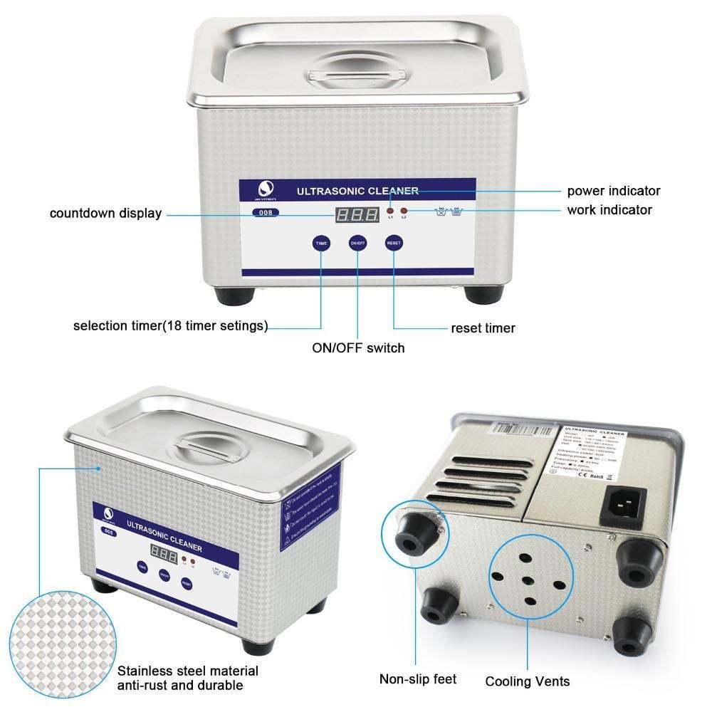 The ultrasonic cleaner is designed for powerful, professional-grade cleaning to remove dirt, oil, and grime from your valuable items, including jewelry, eyeglasses, and instruments in minutes without damaging them. It is applicable to glasses, watches, jewelry, metal articles, and metal dishware. It is ideal for jewelry shops, eyeglasses shops, watch and clock shops, dental clinics, mobile phone shops, office, and household use.