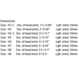 | Size : H2 | Dia. of head (mm): 2 / 0.08" | Length. (mm): 50mm |