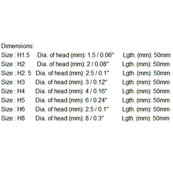 | Size : H1.5 | Dia. of head (mm): 1.5/0.06" | Length. (mm): 50mm |
