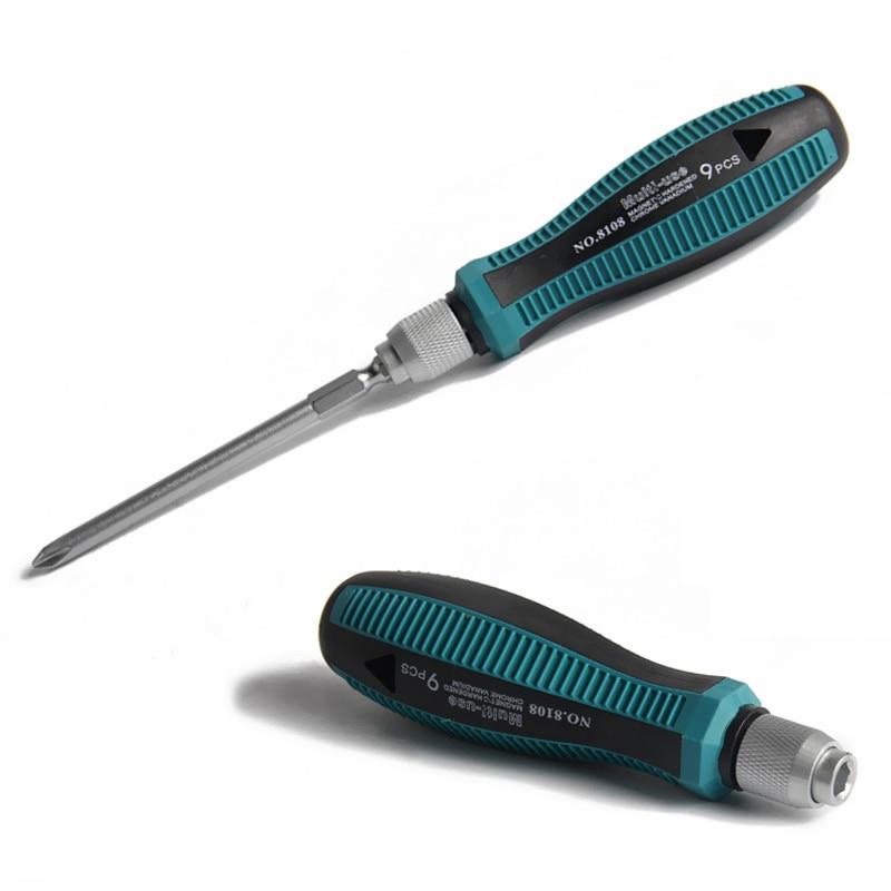 9Pcs/set Precision Screwdriver Set 1/4"/6.35mm Phillips/Slotted Bits With Magnetic Multitool Home Appliances Repair Hand Tools