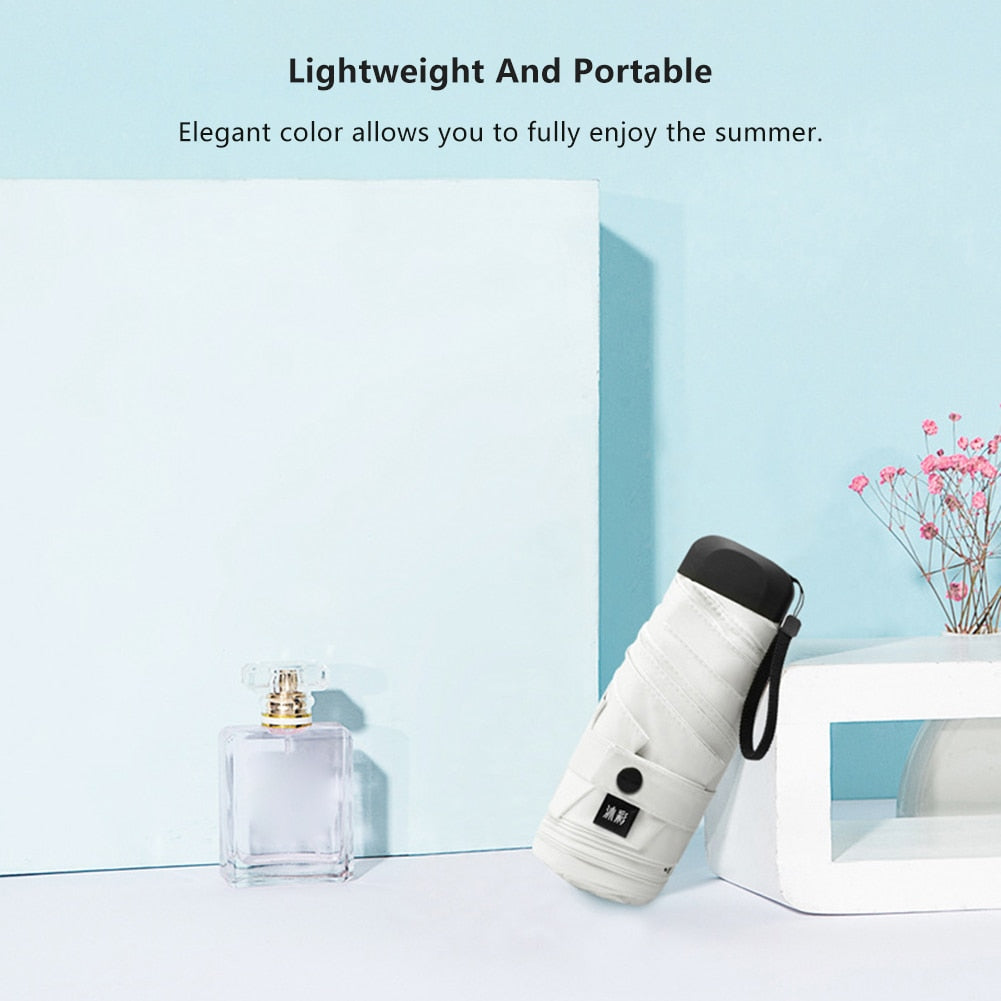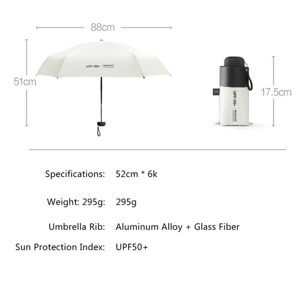 Upgraded to 8-rib small umbrellas. More sturdy. The mini umbrella shaft is designed thicker than that one to make sure it’s sturdy and strong enough to against the wind and rain. - The travel umbrella is made of a layer of UV resistant material. The UV protection umbrella is able to block 95% UV ray and protects you well from the strong sunlight. Keep you cool in the sun and safe in the rain. Waterproof coating makes the compact umbrella dry quickly.