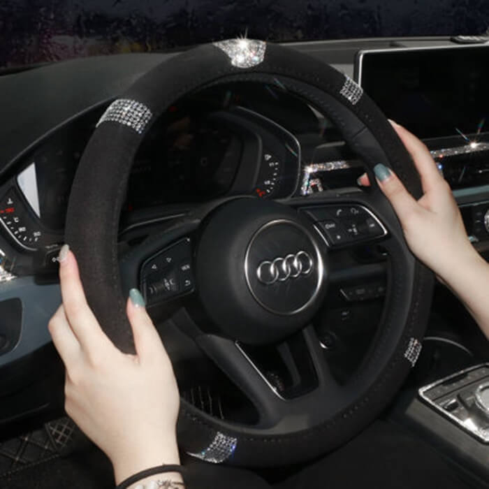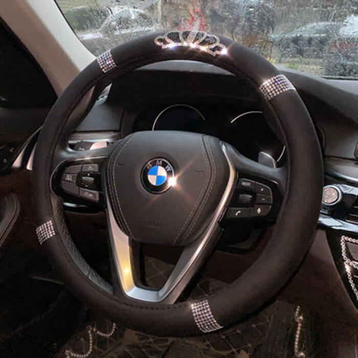 - This Crystal Steering Wheel Cover with Rhinestones Material: High Quality breathable synthetic fiber and Top Diamond Craftwork: more stable compare with other same products, and will not hurt your hands.