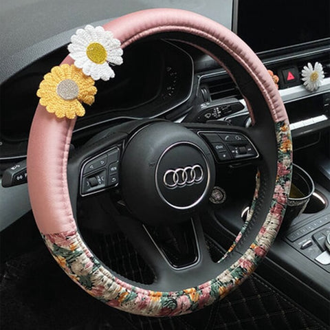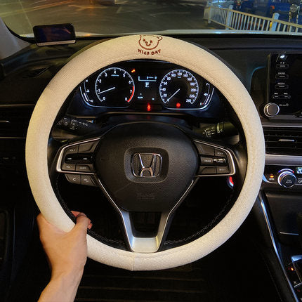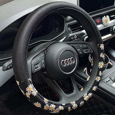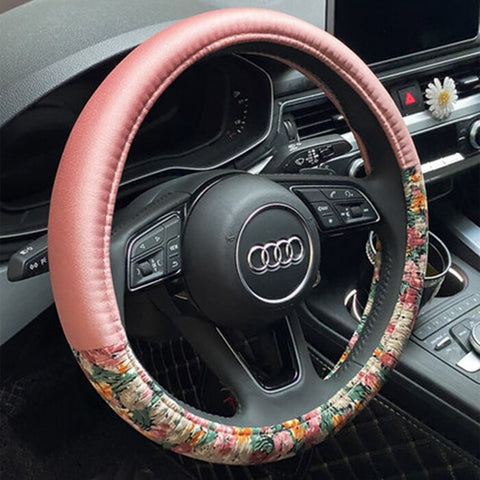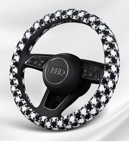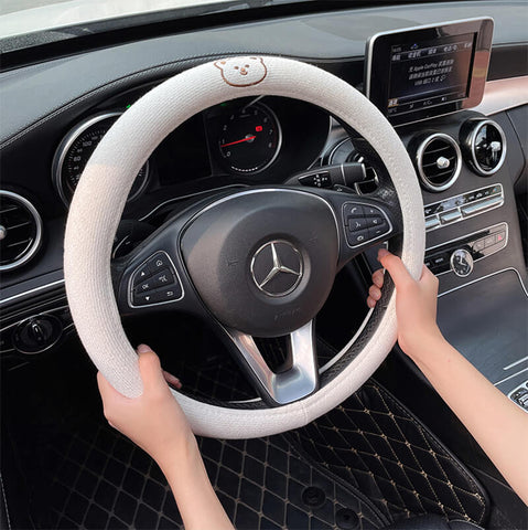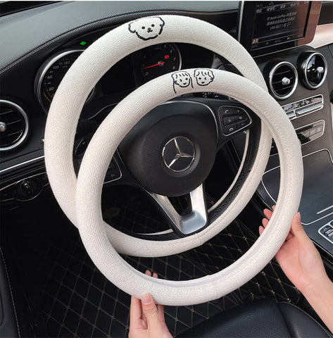 - Easy Installation: This stunning steering wheel cover requires hassle-free installation. Simply slip it right on to your steering wheel and your good to go. Just place the cover on top of the steering wheel. Press and hold the upper part of the cover and gradually lower it with both hands on either side to tighten.
