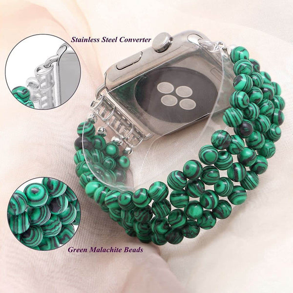Green Jewelry Beads Watchband for Apple Watch Band iWatch 7 SE Series 6 5 4 3 2 1 Watch Strap Women Bracelet