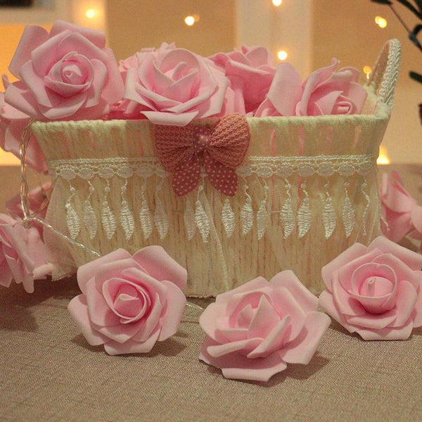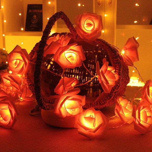 This is a Rose Flower battery fairy string light, total 20 LED bulbs with clear cable and battery box.
