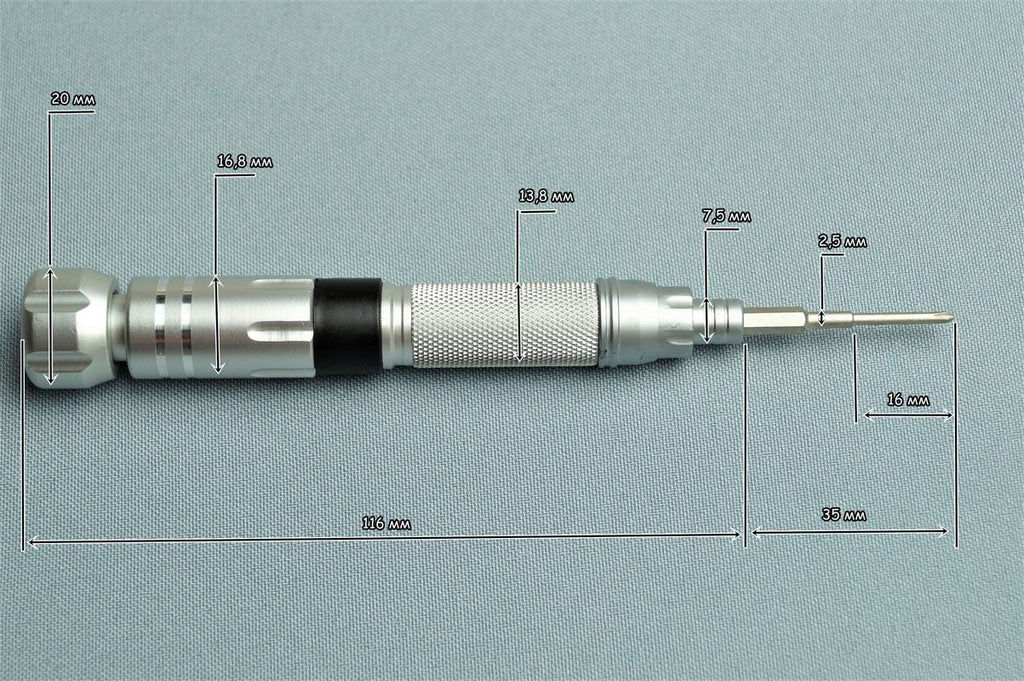 Dimensions of screwdriver without extension