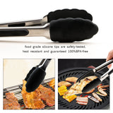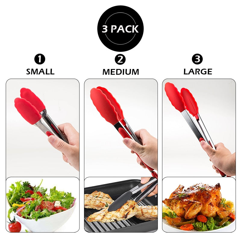 Our Available in 3 different sizes 7”,9” and 12” silicone-tipped tongs have large clamshell heads for easily serving salads or turning the largest cuts of meat on the grill