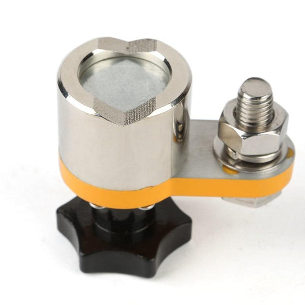 This Welding Ground Clamp is designed to hold a ground cable to any ferromagnetic surface. Using patented technology, this device has strong holding power as well as a great amount of shear force holding strength to reduce sideways movement.