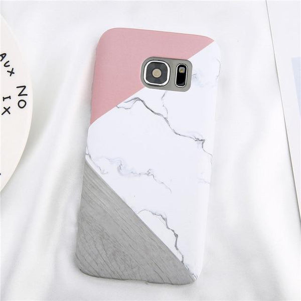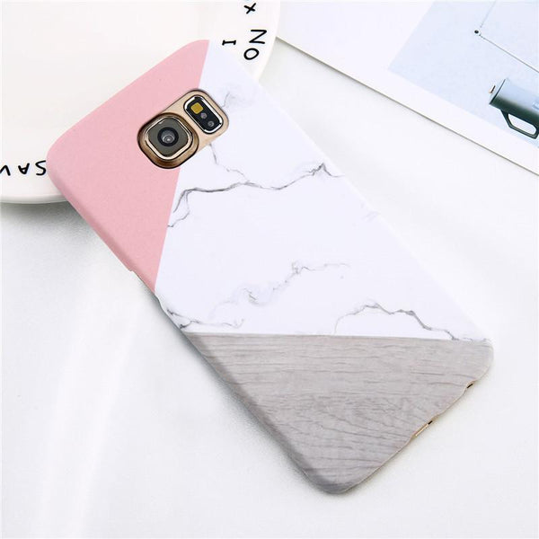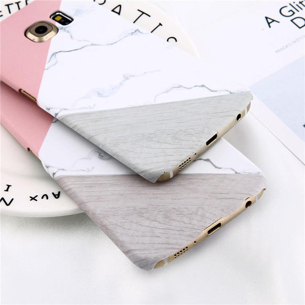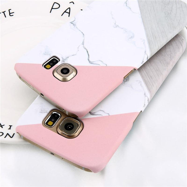 Geometric Stitching Marble Stone Hard Back Cover Phone Case For Samsung Galaxy S6 S7 Edge S8 S9 Plus